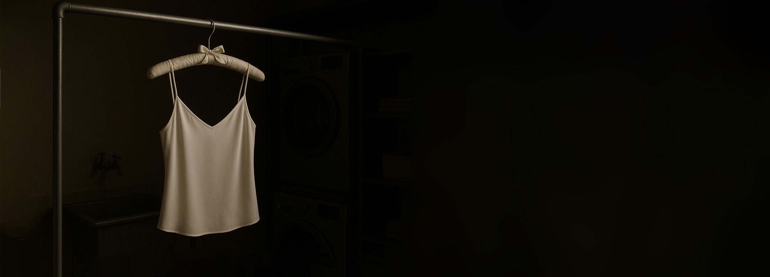 Non usare mai l’asciugatrice. Appendi il capo al rovescio su una gruccia imbottita, lontano dalla luce solare e da fonti di calore