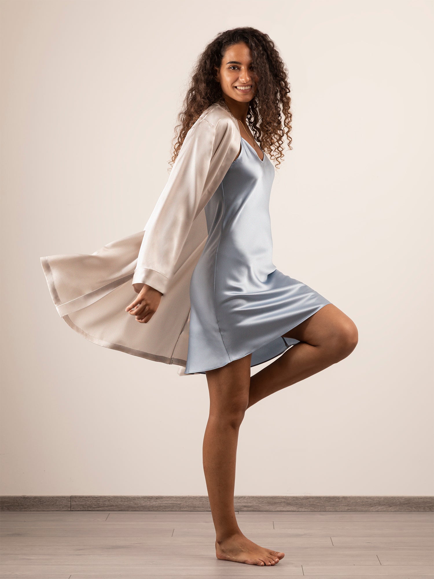 La seta, con la sua leggerezza e raffinatezza, è l’essenza di questa libertà: si trasforma, si adatta, si muove con te. Perché vestirsi non è seguire una regola, ma esprimere come ci si sente.